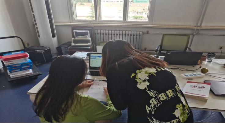 圖為實踐隊員在一起討論秸稈還田政策。中國青年網通訊員 江思彤 攝
