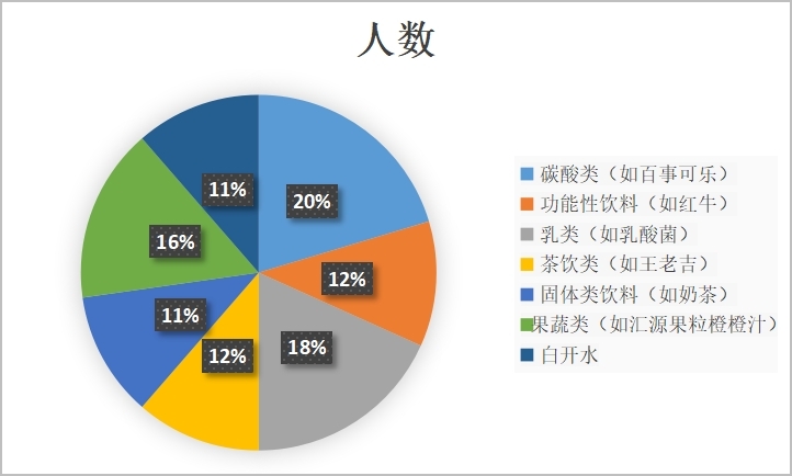 飲用碳酸類飲料的人群占抽樣人群的20%;飲用功能性飲料的人群占抽樣人群的12%;飲用乳類飲料的人群占抽樣人群的18%;飲用茶飲類飲料的人群占抽樣人群的12%;飲用固體類飲料的人群占抽樣人群的11%;飲用果蔬類飲料的人群占抽樣人群的16%;飲用白開水的人群占抽樣人群的11%。從調(diào)查結(jié)果,可以得知碳酸類飲料在人群中較受歡迎。對(duì)此,實(shí)踐小組展開對(duì)市面上常見的碳酸飲料的含糖量的初步測定。