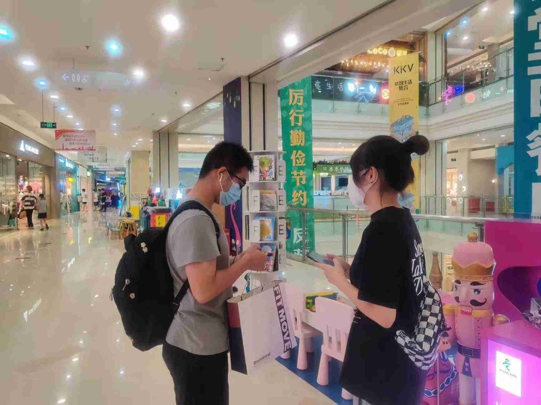 圖為隊員在商場隨機采訪路人。 葉嘉文攝