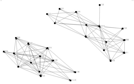 第三項是語義網絡圖構建,調研組組員使用ROSTCM軟件進行語言網絡圖構建,大致步驟為:生成高頻詞—高頻詞進行過濾—生成行特征詞表—生成共現矩陣詞表—生成共現矩陣文件。分析后可得到語義網絡圖。