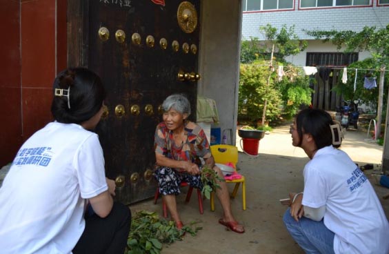 圖為實(shí)踐團(tuán)隊(duì)成員向村民奶奶采訪時(shí)場(chǎng)景。