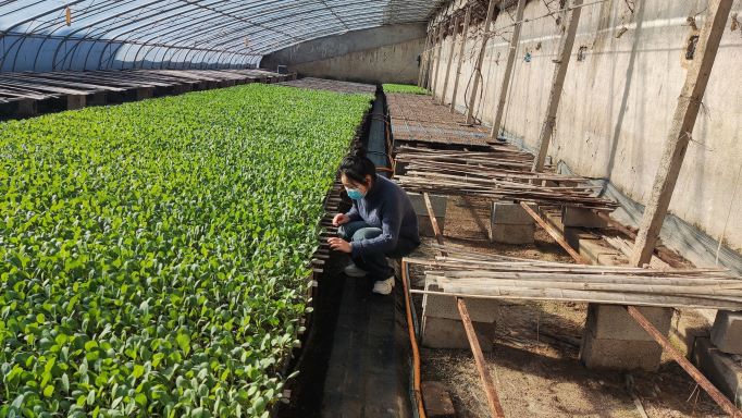 圖為實(shí)踐隊(duì)員在農(nóng)業(yè)大棚進(jìn)行實(shí)地考察。中國(guó)青年網(wǎng)通訊員劉晗悅 供圖