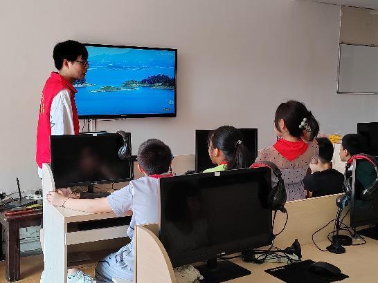 圖為志愿者為學生講述十堰名勝。朱宏基 攝