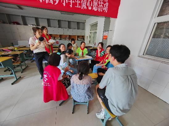 圖為志愿者與孩子們一起參與游戲。朱宏基 攝