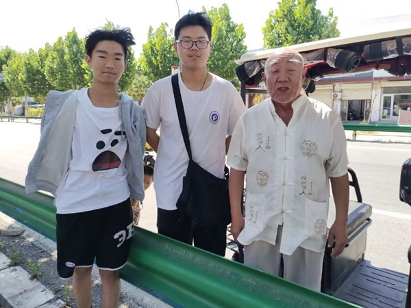 圖為志愿者王亞森和王二豪與當地老人合影。中國青年網通訊員 楊潤 攝