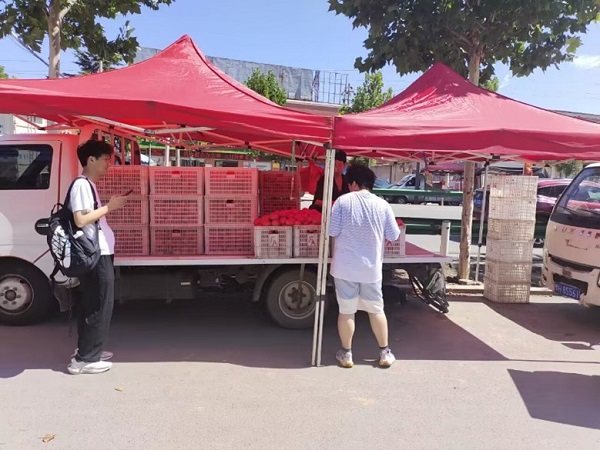 圖為志愿者孫振威和李相衡調查當地物價水平。中國青年網通訊員 劉金陽 攝