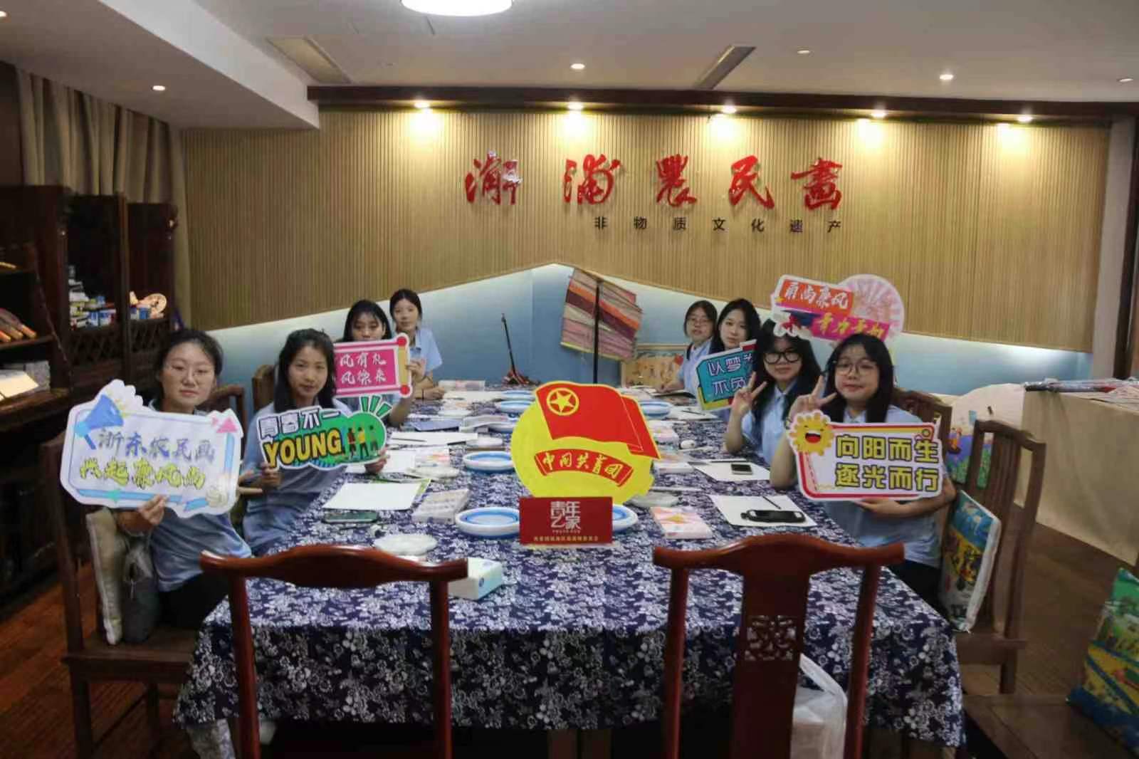 “甬尚廉風 青力青為”暑期社會實踐團隊到十三房村后的第一站,就來到了寧波市非物質文化遺產項目——澥浦農民畫創作基地,通過實地調研、采訪,甬派青年們梳理出了澥浦農民畫的發展歷程,并驚訝于這種傳統鄉土藝術給十七房村帶來的改變。澥浦農民畫這種藝術形式已在十七房村浸潤鄉土,滋養鄉情,為鄉村振興注入了內生動力。