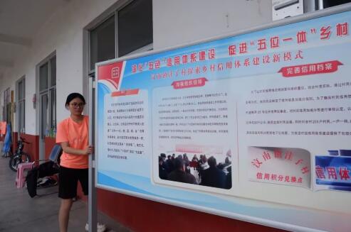 洼子村宣傳欄重點標明信用體系建設,大力宣傳進一步推進美德山東和信用山東建設工作,貫徹落實社會信用體系具體要求,積極響應新泰市政策,推出五色信用體系,建成公平誠信村莊。