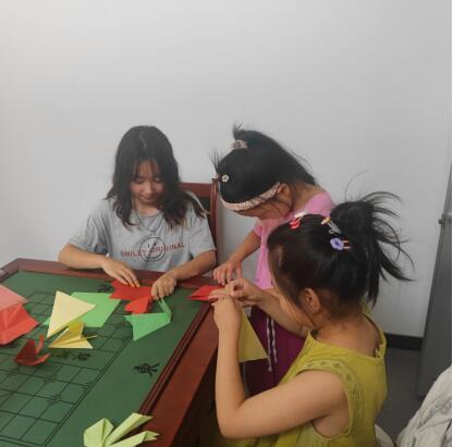 折紙課堂,愿夢飛翔。折紙作為一門古老的藝術通過長時間不斷的演變和發展,現代折紙對于兒童、青年人可以說是一種既富挑戰性又能啟發思維的身心活動。折紙的藝術具有審美價值,蘊含著數學運算和空間幾何的原理。實踐團成員開展的趣味折紙特色課堂活動讓小朋友們在寓教于樂的氛圍中,增進對傳統手工藝文化的了解,充分感受到中華傳統文化的藝術魅力,增強其文化自信。