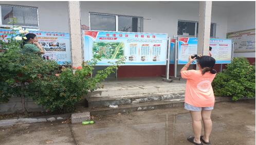 圖為實踐團成員幫助洼子村干部拍攝宣傳欄圖片