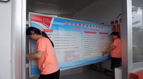 圖為實踐團成員搬運“五色”信用宣傳欄