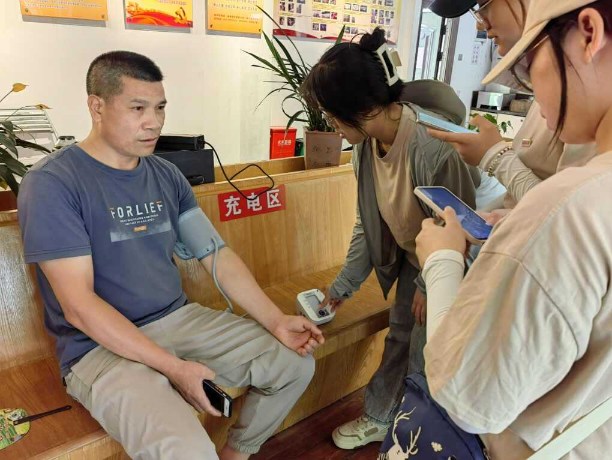 圖為禾成團(tuán)隊(duì)監(jiān)測(cè)游客身體指標(biāo)。郭云欣 攝