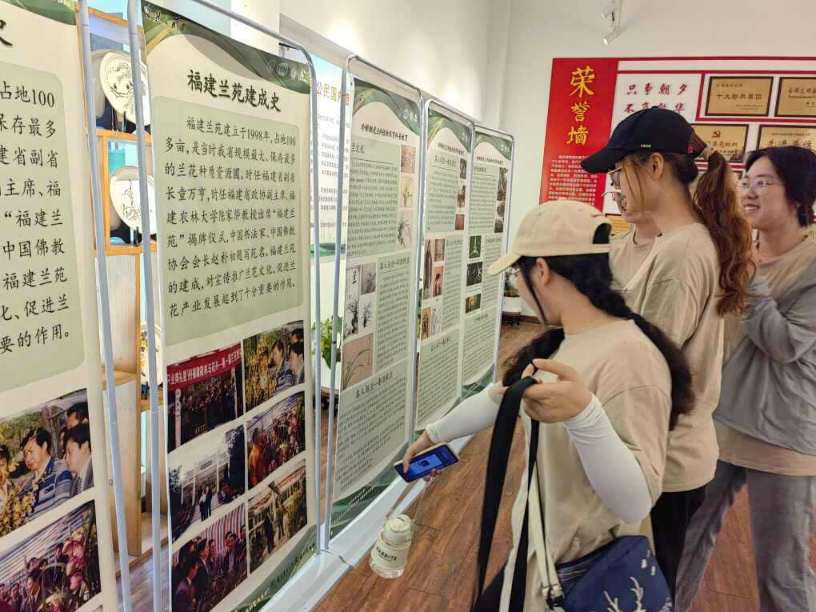 圖為禾成團(tuán)隊(duì)成員了解福建蘭苑建成史。 郭云欣 攝