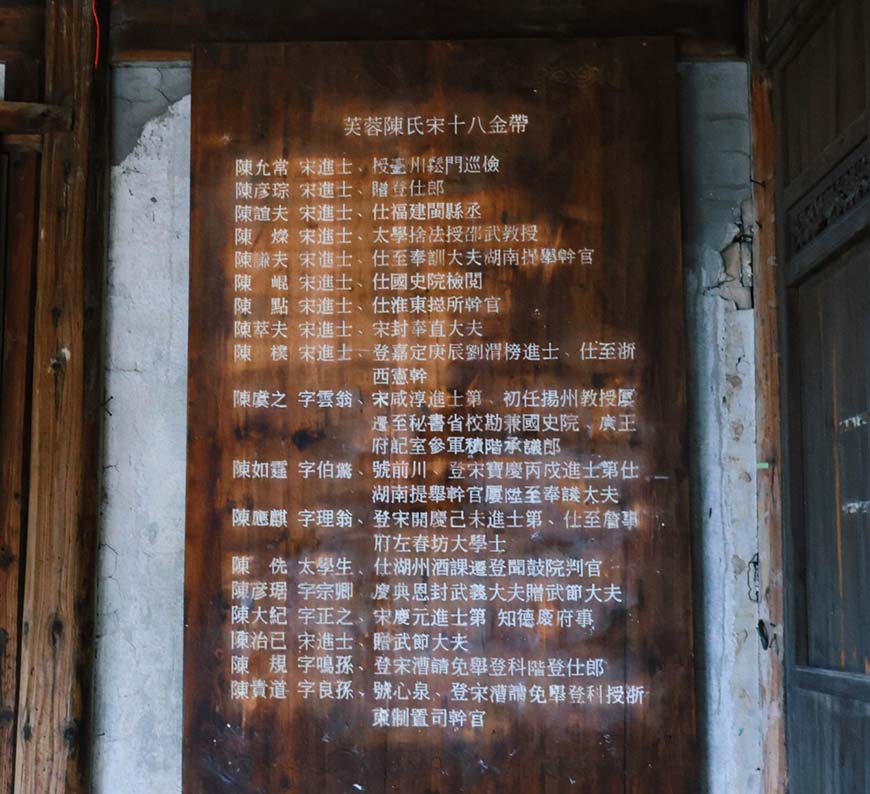 永嘉縣在南宋期間考取的進士達到464位,在芙蓉古村就有18人,同為京官,稱為“十八金帶”,他們考取功名、廉潔執政。