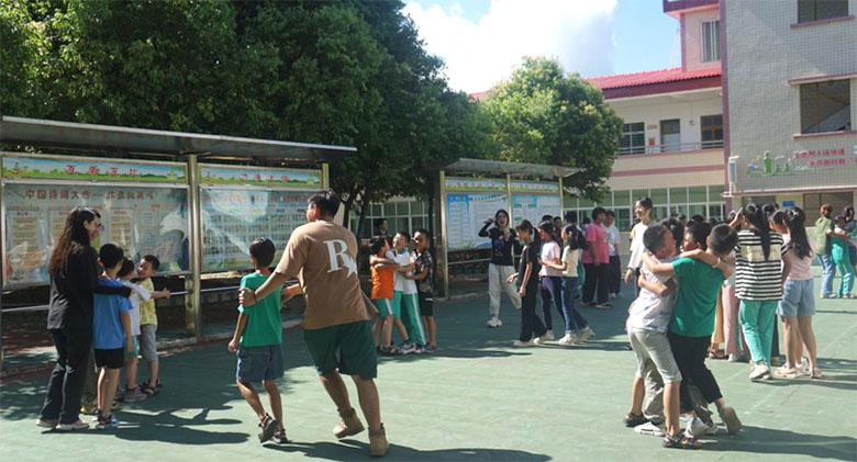在“猜猜我是誰”游戲環節中,同學通過舉手的方式,叫出老師的名字與所教科目,這個過程增進了同學對志愿者老師的了解。第二個游戲環節是“蘿卜蹲”,老師分成八組,分別帶領五至六位同學進行游戲,該過程既拉近師生關系,也培養了同學的反應力;游戲循序漸進地增加同學間的關系,“數數抱團”中,學生圍成一個圓圈,沿逆時針方向慢跑,當志愿者老師喊單個數字時,學生應立即與臨近的同伴抱成一團。