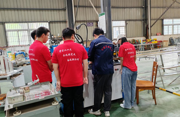 上午8點,同學們滿懷著期待的心情到達了安徽卓越電力設備有限公司,并在公司負責人的介紹下認識了鉗工師傅,在鉗工師傅的帶領下,同學們開展了學習。首先鉗工師傅向團隊成員們介紹了車間安全規范守則,并強調一定牢記于心。之后鉗工師傅為團隊成員們講解了工量具的用途和使用方法,并親自操作,向團隊成員們演示了簡單電力設備零件的加工流程。在鉗工師傅的教導下,同學們逐步了解了加工的具體過程,掌握了一些簡單的加工技術。