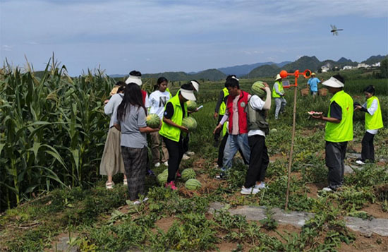 二、戰(zhàn)勝酷暑,傳遞鄉(xiāng)情長嶺村正值解暑神器—西瓜守獲時節(jié),實踐團成員深入田間地頭,頭頂烈日,為當?shù)毓限r收西瓜。