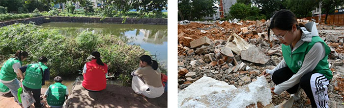 活動最后,實踐團成員沿途對街道管轄區域內的河道與建筑垃圾堆放場進行了實地調研,調查發現,目前區域河道都已種植凈水型植物,各個河道環境逐漸改善。街道附近建筑垃圾堆放場還存在著垃圾隨意丟棄的現象,需要大家共同督導,進一步的改善。