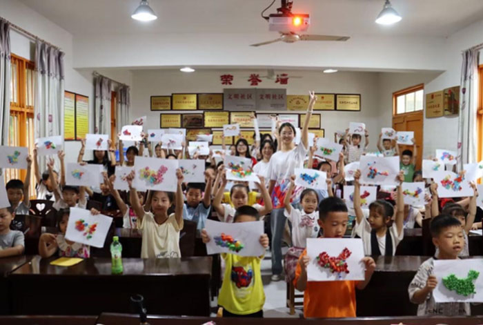 為扎實開展學習貫徹習近平新時代中國特色社會主義思想主題教育,深入學習習總書記關于教育的重要論述,全面貫徹黨的二十大精神,堅持教育、科技、人才“三位一體”的戰略部署,堅持教育優先發展,加快建設教育強國,加強青少年素質教育,引導青少年形成正確的價值觀,提高他們的自我意識和創造力,提高其未來的職業和生活樂趣。近日,重慶對外經貿學院藝術設計學院“齊心合力繪夢太和”創藝鄉村振興促進團前往重慶市合川區太和鎮馬門溪、絲綢園社區,開展“多彩陽光,藝路同行”暑期教育系列課堂,助力鄉村教育發展。