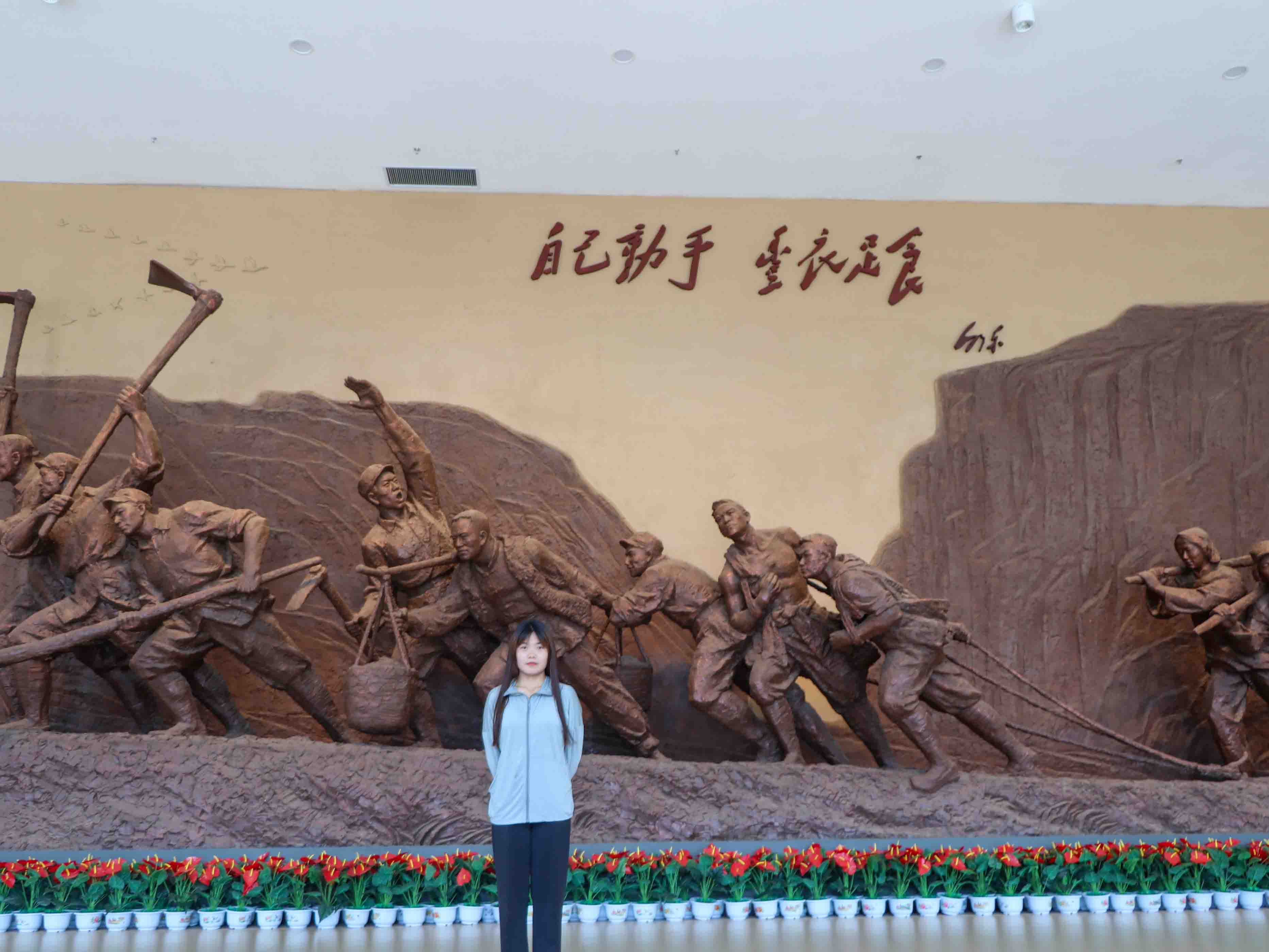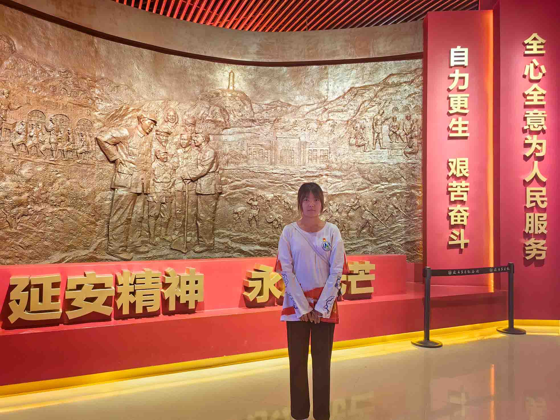 延安革命紀念館前是一個大型廣場,平坦開闊,綠茵覆蓋,周圍繁花似錦。館內展出照片及文物千余件,還有模型、油畫、雕塑及場景復原等輔助展品,并運用聲光電等現代科技手段,增強陳列的動態效果,使人身臨其境,讓我們進一步了解了中國革命走向偉大勝利的歷史進程。在這里切實進行了一次走深走實的黨史學習,經歷了一次不忘初心的精神洗禮。深刻領會了延安精神和老一輩革命家的風采,體悟老一輩無產階級革命家不屈不撓、艱苦奮斗的革命精神和高尚情操,未來我必定將青春奮斗融入黨和人民的事業中,以實現中華民族偉大復興為己任,增強身為中國人的志氣、骨氣、底氣,不負時代,不負韶華。