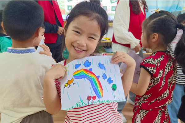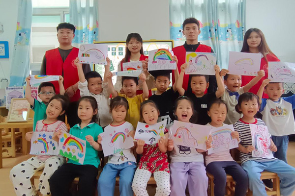 “我好喜歡畫彩虹!”一個五歲的小朋友興奮地說道。她向大家展示了自己的作品,彩虹的色彩明亮而鮮艷,笑容的感染力已經帶給了每一位實踐隊隊員,也把開心帶給了看到照片的每一個人。小朋友們繪制的彩虹各異,充滿了創造了和想象力。實踐隊隊員們也希望能夠通過贊賞和鼓勵他們的創作成果,讓小朋友們對藝術的熱愛得到增強。