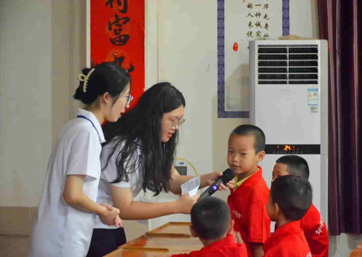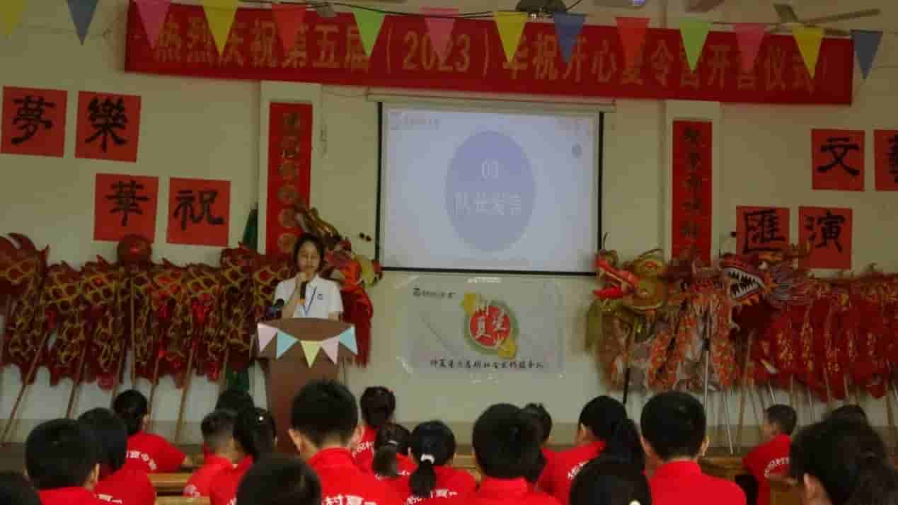 多方代表講話,共明教育理念。升旗儀式結束后,華祝村夏令營營長、華祝村家長代表、柳夏星火隊隊長在學校禮堂進行講話。夏令營營長強調:“華祝村一直以來都十分重視教育,期望在本次夏令營中,孩子們能更了解梅州的歷史文化,成為中華優秀傳統文化的繼承者和發揚者,做立大志、明大德、成大才、擔大任的時代新人。”夏令營營長的講話得到村民、隊員和學生們的一致贊同,禮堂內掌聲連連。夏令營營長講話完畢后,華祝村家長代表上臺講話:“教育很重要,但教育一定要以安全為重,確保學生安全開營、安全學習、安全實踐、安全結營。同時,期望柳夏星火隊的老師們在教育中堅持‘三心’:愛心、耐心、責任心,共同繪就這個美好的夏天。”聽到家長代表的講話,柳夏星火隊隊員們目光堅毅,更加堅定了“以人為本”的教育理念。之后,柳夏星火隊隊長葉嘉怡表示:“感謝營長、家長、村民、學生對本次夏令營活動的積極參與和支持。我們定不負多方期待,在教育和實踐的過程中,綜合發揮多學科、多專業的團隊優勢,播下理想信念的種子,助力學生在‘德智體美勞’上全面發展、成為家鄉文化的好旗手和代言人。”在家長、隊員和學生們期待目光的注視下,各方講話結束。此次講話明晰了本次夏令營“以人為本”、“全面發展”的教育理念,達成了多方共識。