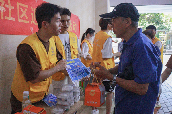 圖為實踐隊隊員在溪岸社區開展有獎競答活動。陳晨 攝
