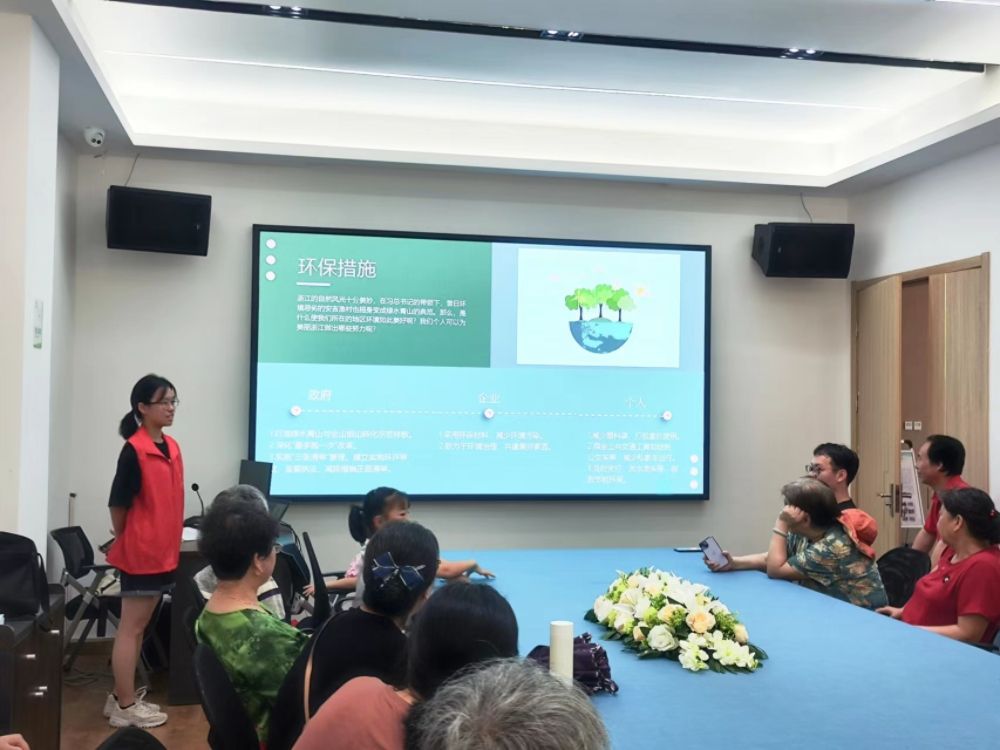 宣講以一段展現浙江美麗風光的視頻開頭,讓大家驚艷于浙江風景的優美絢麗,生發出守護美好家園的想法。接著,宣講同學引出習近平“綠水青山就是金山銀山”的語錄,介紹了國家、社會、個人能為環境保護實施的措施,最后以環保成果結尾,激勵人們熱愛自然、保護環境,建設美麗杭州、美麗浙江。