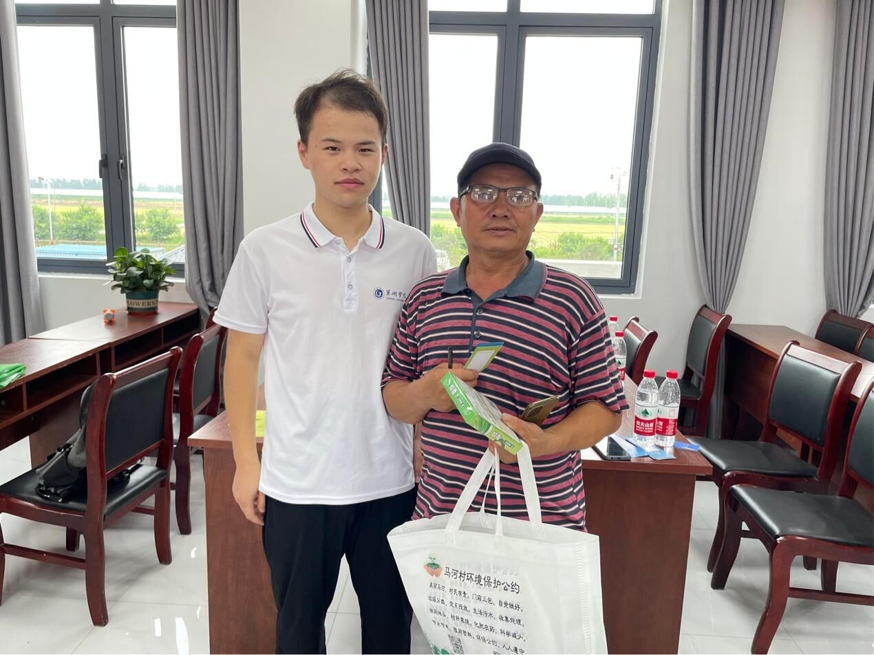 圖為調研團隊成員為前來聽宣傳講座的村民們發放宣傳海報。多彩大學生網通訊員 丁曉陽 攝