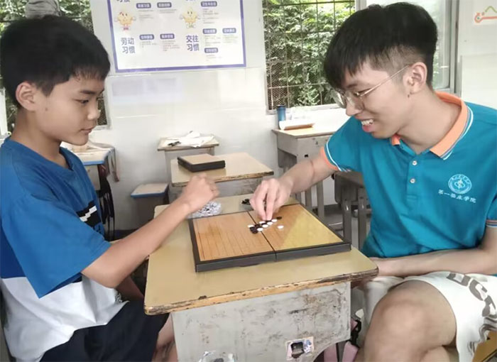 圖為果果老師與小朋友一起下棋的情景 通訊員 吳建華 供圖