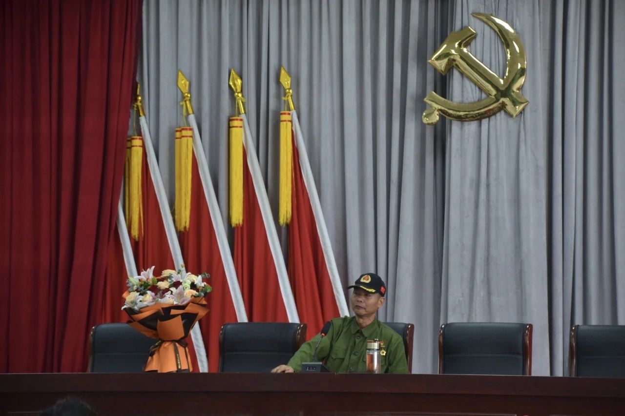 圖為吳爺爺進行七一建黨主題講座 張詩月 供圖