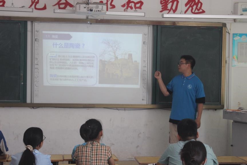 我們的隊(duì)員采取搶答的方式以了解同學(xué)們對(duì)陶瓷文化的了解程度。講述陶瓷的起源、陶瓷的用處、淄博特色陶瓷發(fā)展歷史以及淄博發(fā)展特色陶瓷產(chǎn)業(yè)為同學(xué)們講述陶瓷制作過程。讓同學(xué)們對(duì)陶瓷的由來、陶瓷的發(fā)展、陶瓷的制作更加感興趣,在興趣中尋找歡樂,在歡樂中氤氳陶瓷文化、淄博文化。
