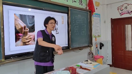陶瓷制作過程和動手實踐環節,楊新成結合齊稷瓷色暑假社會實踐團的資料帶領小朋友們通過視頻學習陶瓷的制作方法,并與他們一起進行制作。