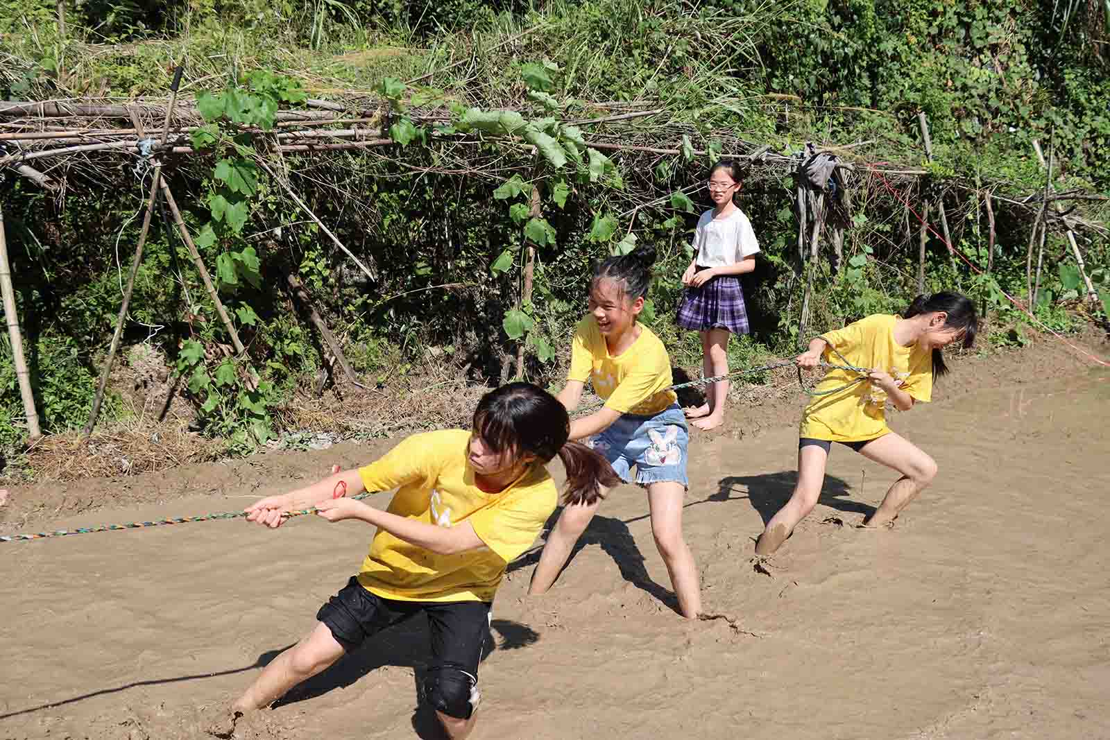 同學(xué)們在泥田賽跑之后,仍意猶未盡。隊員們又策劃了一場引人入勝的拔河比賽,站成陣列,分成兩隊,手緊握著繩子,準(zhǔn)備迎接激烈的對決。比賽開始,孩子們熱血沸騰的吶喊聲化作一股勢不可擋的能量,驅(qū)使著每位孩子使出他們的全力,烈日下,他們身上的汗水象征著每位孩子必勝的決心。彼此之間的團(tuán)結(jié)和配合成為比賽中最亮眼的合奏,每一次的拉扯和對抗都蘊(yùn)含著堅持和挑戰(zhàn)。幾個簡單的活動,卻成為他們成長中的一次重要經(jīng)歷,他們奮進(jìn)全力的身影展現(xiàn)了他們永不言棄,尊重對手,尊重比賽的運動精神;在對手跌倒時,他們伸出援手的舉動,彰顯著他們心中“友誼第一,比賽第二”的堅定信念,這也讓他們的關(guān)系更加融洽,之間的友情更加親密。