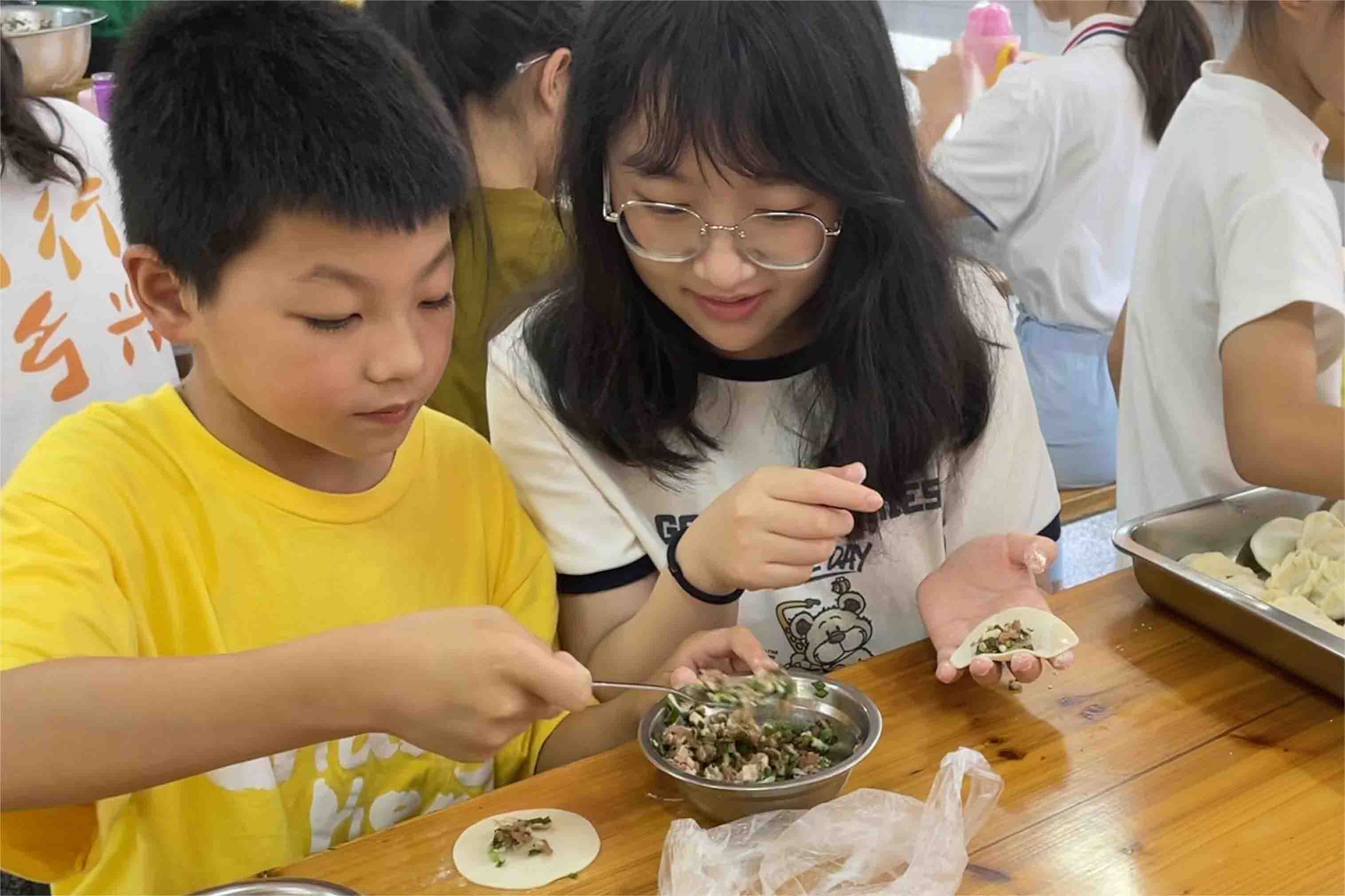 下午,為了讓孩子們更好地感受勞動的樂趣,體驗自己制作傳統(tǒng)美食的樂趣,緣溪漁長坑小隊的隊員們在學(xué)校老師的引領(lǐng)下,為孩子們策劃了一場“包餃子”活動。各班帶隊隊員為長坑小學(xué)的學(xué)生們詳細(xì)介紹了包餃子的步驟和技巧。隊員們形象的解釋著“咱們的餃子,要有圓滾滾的大肚子”,孩子們聚精會神地聆聽著,眼睛里閃爍著期待的光芒,還興高采烈地拉著身邊的小伙伴分享自己包餃子的經(jīng)歷。隨后,在隊員們的帶領(lǐng)下,一個個小面團(tuán)在孩子們的搟面杖下,旋轉(zhuǎn)幾圈后,變成了一塊塊面皮。隊員們首先拿起桌子上準(zhǔn)備好的肉餡,在孩子們面前首先包了幾個餃子,學(xué)生們學(xué)著他們的樣子抓一把餡兒塞進(jìn)里面,一個個雖不完美但充滿心意的餃子誕生了!隊員們巡視著自己管理的班級,給孩子們指導(dǎo)和幫助。他們輕聲鼓勵,引導(dǎo)他們自己動手,傳授包餃子的竅門,確保每個孩子都能參與其中。包餃子的過程接近尾聲,孩子們的創(chuàng)意無限,許多餃子形狀奇特,有的像小船兒,有的像星星,更有創(chuàng)意十足的小朋友假裝作畫,將餃子包成了各種動物形狀。活動結(jié)束時,隊員們面帶笑容地鼓勵每位小學(xué)生,稱贊他們的努力和成果。這不僅鍛煉了孩子們的動手能力,還增強(qiáng)了他們的團(tuán)隊合作意識,更讓他們體驗到了工作的樂趣和成就感。