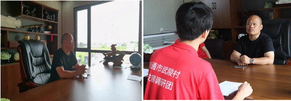 7月3日,河海大學(xué)南通市武陵村發(fā)展調(diào)研團(tuán)對武陵村書記黃曉丹、上海市外蔬菜農(nóng)業(yè)基地負(fù)責(zé)人朱成鑫、嘉禾力有限公司陸經(jīng)理和南陽鎮(zhèn)副鎮(zhèn)長朱曉瑋、黃健進(jìn)行采訪。