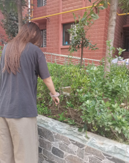圖2.趙蕾蕾撿拾花壇中的煙頭等