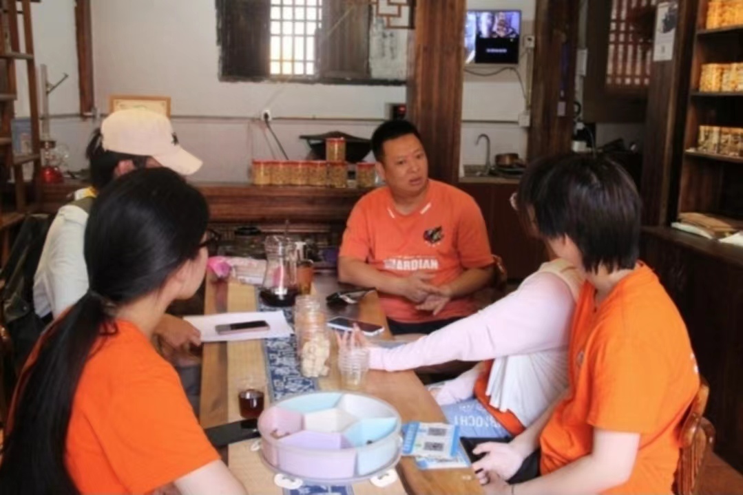 朱老村長還帶領實踐團成員走訪了朱宅舊時老大、老二的廳堂,并詳細介紹了房屋布局和現今店鋪的建設情況。在這些古色古香的徽派建筑內,溫情滿滿的一個個小店吸引了實踐團成員的目光。