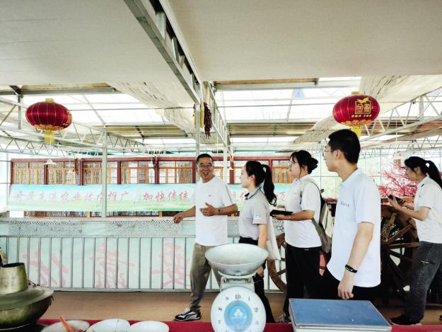 在開隆合作社,實踐團隊依次參觀了開隆民俗文化館及蔬果、花卉大棚。民俗文化館中陳列著的一件件具有年代感的物品讓同學(xué)們感受到傳統(tǒng)文化所具有的物質(zhì)生活價值、精神生活價值、社會生活價值。大棚里牽牛花、火炬花等花卉艷麗綻放,番茄、青椒等蔬果生機勃勃,實踐隊員們在參觀大棚過程中了解到合作社無公害蔬菜、花卉的生產(chǎn)與銷售以及無土栽培、立體栽培的栽培技術(shù)。
