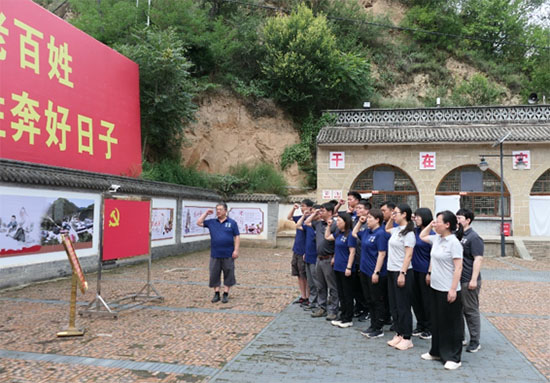 在切身感悟了習近平總書記當年在梁家河艱苦環境下所表現出的“艱苦奮斗、實干擔當、敢為人先”的知青精神之后,全體黨員同志在戴宏書記的帶領下,在村史館廣場的黨旗前,重溫了入黨誓詞。