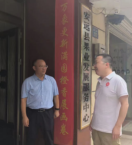上午,實踐團隊前往安遠縣果業發展服務中心,深入了解安遠縣臍橙產業發展“前世今生”。據果業中心黨組書記介紹,安遠縣積極響應國家“綠水青山就是金山銀山”戰略發展需求,安遠縣在千禧年后全面推進臍橙種植,經過二十余年安遠人不懈奮斗,本縣臍橙種植面積位列贛南十八縣前列,同時在臍橙銷售方面起到龍頭示范作用,實現線下零售、線上電商“兩開花”:贛南全域超過七成臍橙需運至安遠縣進行銷售。