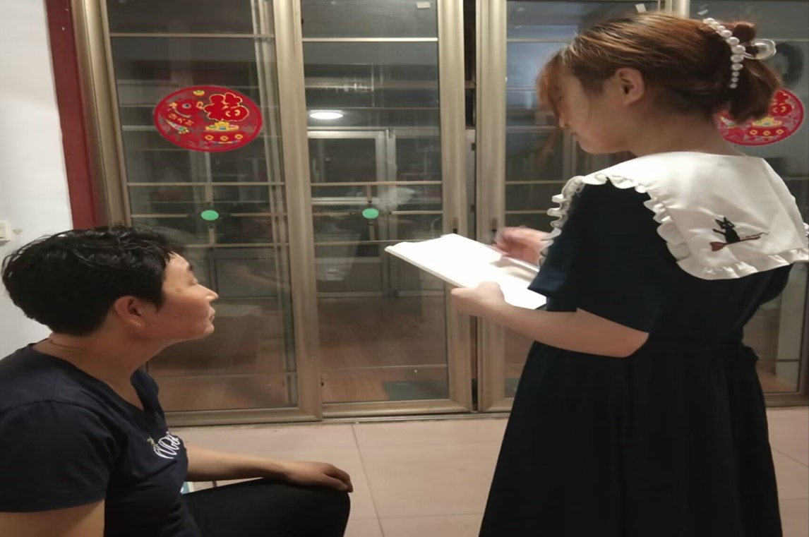 (圖為實踐隊成員對村民進行采訪。萬佳璇 攝)