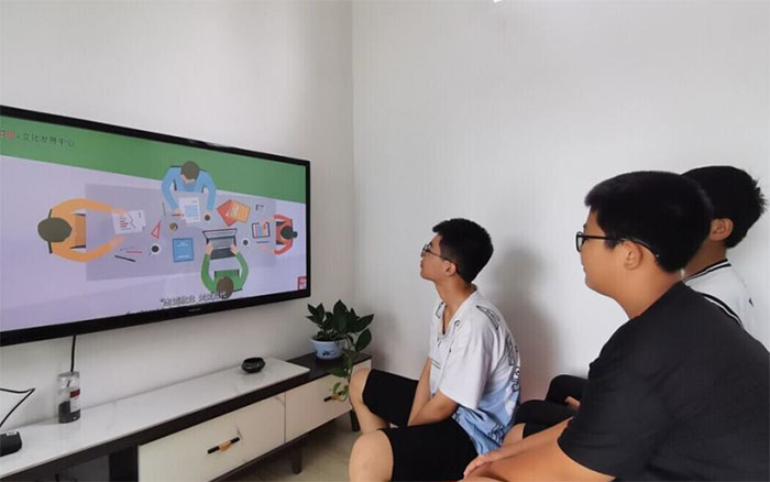 圖為保定市青少年觀看五老精神宣傳視頻。