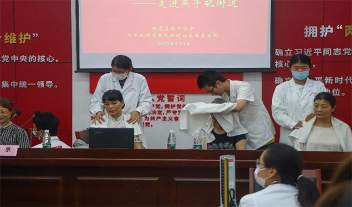 醫惠志行,愛筑夕陽 7月1日與7月2日上午,“志”惠萬家實踐團分別在南化新村社區黨群服務中心和五福家園進行了惠民義診服務活動。除了為居民們提供量血壓、測血糖、推拿、專家問診等義診服務,實踐團成員們還舉辦了以“夏季養生”為主題的宣講活動,將中醫養生思維與生活實際相結合,從飲食習慣、起居規律等方面向居民推廣養生知識。