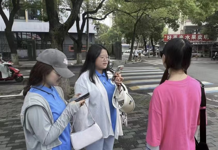 圖為實(shí)踐團(tuán)成員在街頭隨機(jī)對(duì)各年齡層面的常州居民進(jìn)行采訪。徐昕奕 供圖