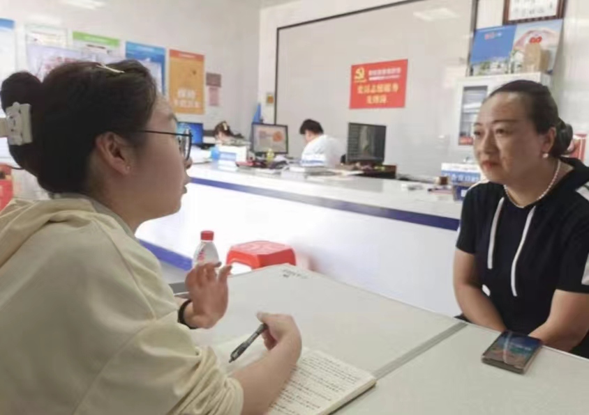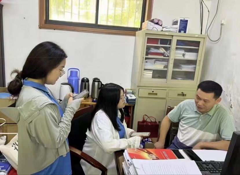 圖為實(shí)踐團(tuán)成員采訪焦溪規(guī)劃發(fā)展辦主任。 徐昕奕 供圖