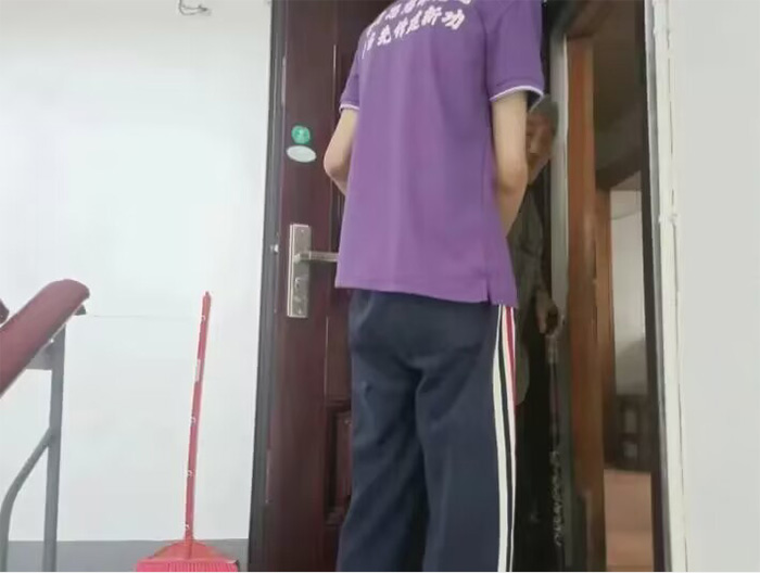 老人們十分歡迎我們的到來,熱情的把我們請進家中。當老人們看見我們時,他們都用親切的眼光看著我們。接下來是禮物大派送,我們團隊帶了許多吃的,有營養豐富的水果和各種各樣的餅干……我們一間挨著一間給老人們送禮物。當老人們接到禮物的同時激動地說不出話來,特別是有一位老奶奶,摟著我不肯放手,我們還拍照留念。工作人員十分的敬職敬責,溫柔的詢問老人們最近的生活狀況,詢問子女最近的回來情況等等一系列問題。而我們則也盡力去做我們力所能及的事,幫老人們收拾房間,打掃衛生,幫他們晾曬衣服和被子,帶老人們下樓曬太陽和聊天。