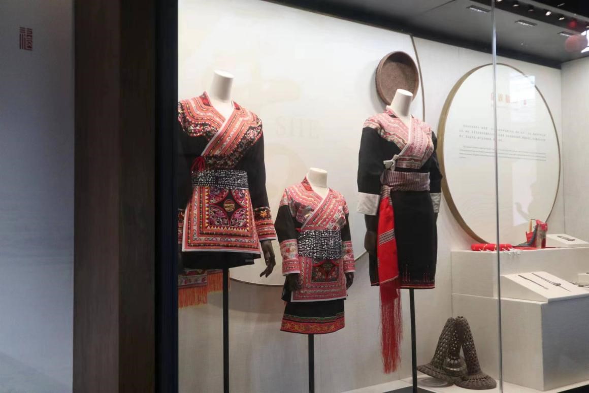 隨后,實踐團(tuán)來到了民族服飾區(qū)域,參觀了福州畬族服飾以及傳統(tǒng)戲劇服飾。閩侯畬族女性服飾,體現(xiàn)了古老的畬族文化,是人類古代服飾的一種遺存形態(tài)。畬族民眾通過服飾裝扮,建立同胞的認(rèn)同感和親和力。傳統(tǒng)古老的畬族女性服飾,不僅傳遞著畬族的原始記憶,還成為今人研究畬族歷史文化的真實資料。精美的戲劇服飾將實踐團(tuán)的成員們帶入了塵封已久的年代,成員們的思緒仿佛飛到了戲劇舞臺上,感受著精美戲劇服飾帶來的視覺震撼;