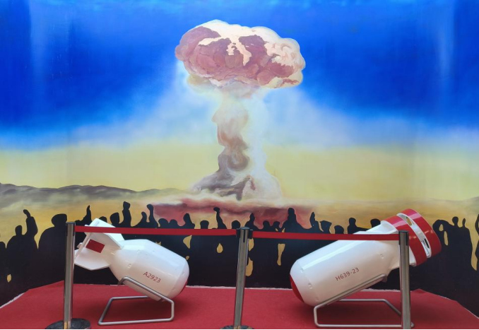 (圖為兩鄧故居內的核彈模型 團隊成員郝萍芬 攝)