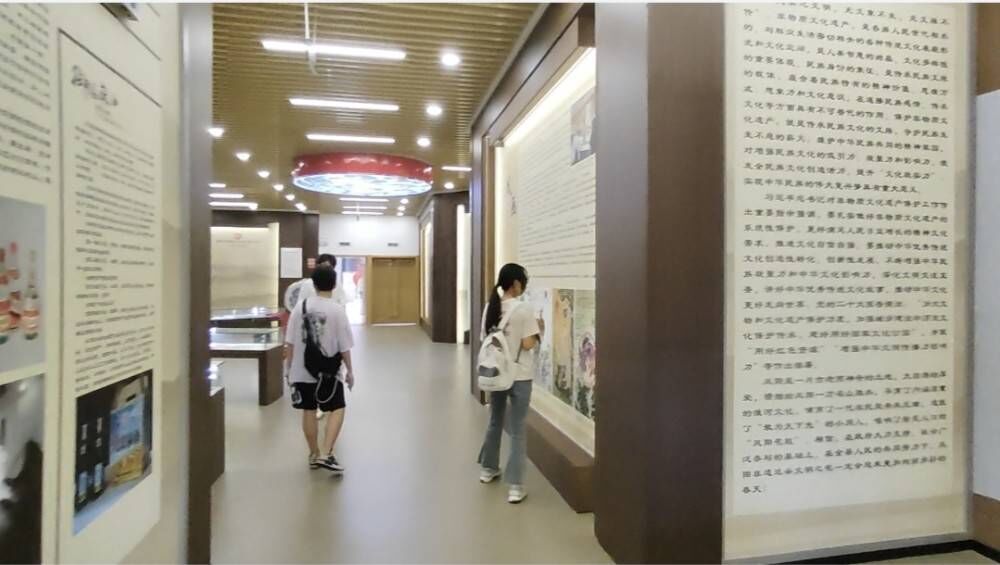 活動期間,團(tuán)隊(duì)成員來到了鳳陽縣文化館,學(xué)習(xí)了解中國傳統(tǒng)非物質(zhì)文化遺產(chǎn)鳳陽花鼓的來源、種類、發(fā)展、特色、地位等。館內(nèi)介紹鳳陽民歌的歷史價(jià)值:它以生動樸實(shí)的形式及內(nèi)容反映了不同時(shí)期人民群眾的生活情境、理想和追求,催化和影響了一批藝術(shù)種類的發(fā)展。鳳陽民歌又分為勞動歌(生活民歌、情歌)和時(shí)政歌兩大類。同時(shí)館內(nèi)還陳列著不同樣式的大花鼓和小鑼花鼓還有鳳陽嗩吶和樓西回民鑼鼓等鳳陽文化產(chǎn)物,還有留存鳳陽花鼓戲曲的安徽日報(bào)和講述用于學(xué)習(xí)鳳陽花鼓的多本書籍及服裝